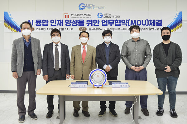 동의대(총장 한수환) 인공지능그랜드ICT연구센터(소장 정석찬)와 한국멀티미디어학회(회장 김치용, 동의대 ICT공과대학장)는 지난 11월 2일 오전 11시, 동의대 인공지능그랜드ICT연구센터 창의자율연구랩실에서 AI 융합인재 양성을 위한 업무협약을 체결했다.