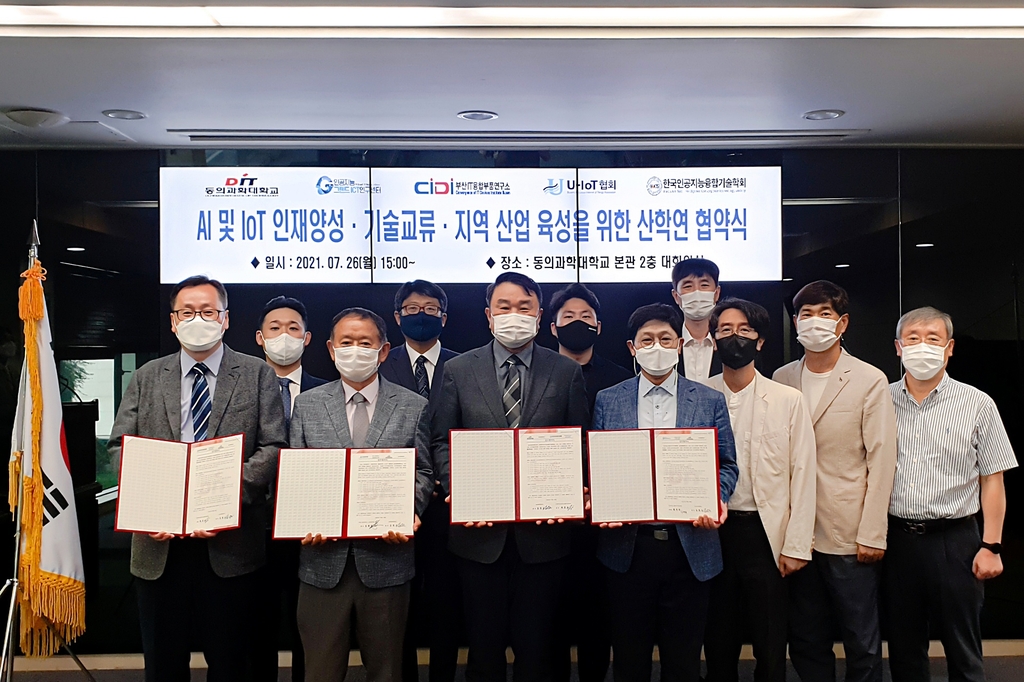 (연합뉴스 2021.07.28) 인공지능그랜드ICT연구센터·동의과학대 AI 지능형 IoT 3개 기관과 산학연 협약